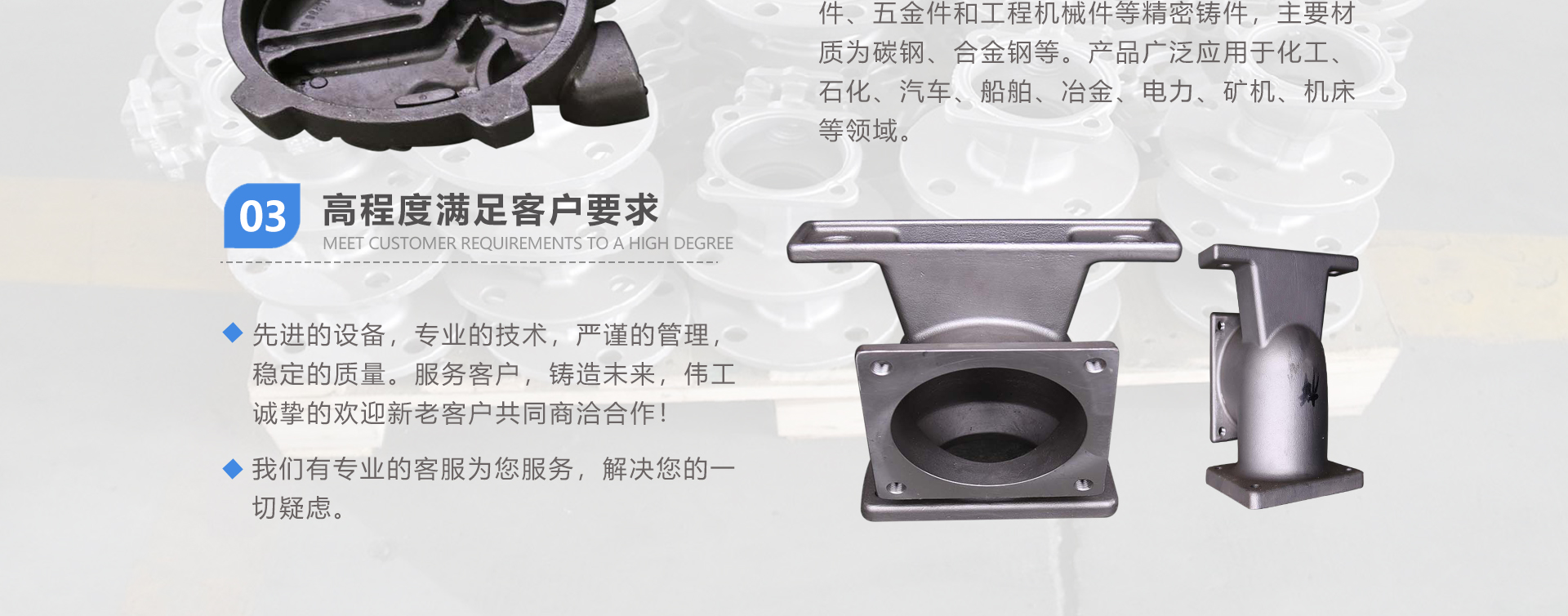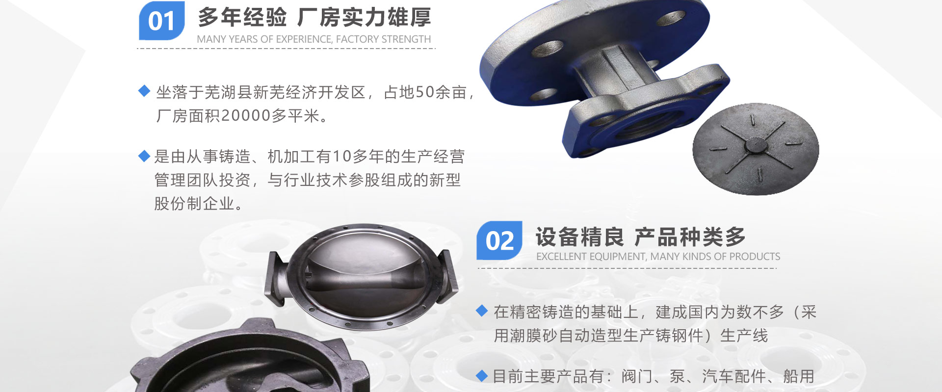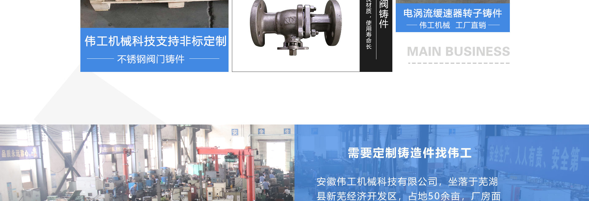 安徽偉工機(jī)械科技有限公司,坐落于安徽蕪湖新蕪經(jīng)濟(jì)開發(fā)區(qū),是一家専業(yè)從事鑄造產(chǎn)品設(shè)計(jì)、研發(fā)、生產(chǎn)、銷售于一體的企業(yè),公司為客戶的產(chǎn)品提供多樣的技術(shù)支持與設(shè)計(jì),公司主要鑄造技術(shù)有潮模砂鑄造、硅溶膠精鑄工藝。主要產(chǎn)品有:不銹鋼閥門配件、泵閥配件、汽車配件、工業(yè)管道配件、工程機(jī)械配件、汽車配件等。材質(zhì)為:低合金鋼、304、316、316L、鉻鉬鋼、哈氏合金、碳鋼、雙相鋼等。公司已先后通過ISO9001和TS16949等多種體系審核,以完備的管理手段和齊全的檢測設(shè)備滿足客戶需求,進(jìn)的設(shè)備,専業(yè)的技術(shù),嚴(yán)謹(jǐn)?shù)墓芾恚€(wěn)定的質(zhì)量。服務(wù)客戶,鑄造未來,偉工誠摯的歡迎新老客戶共同商洽合作